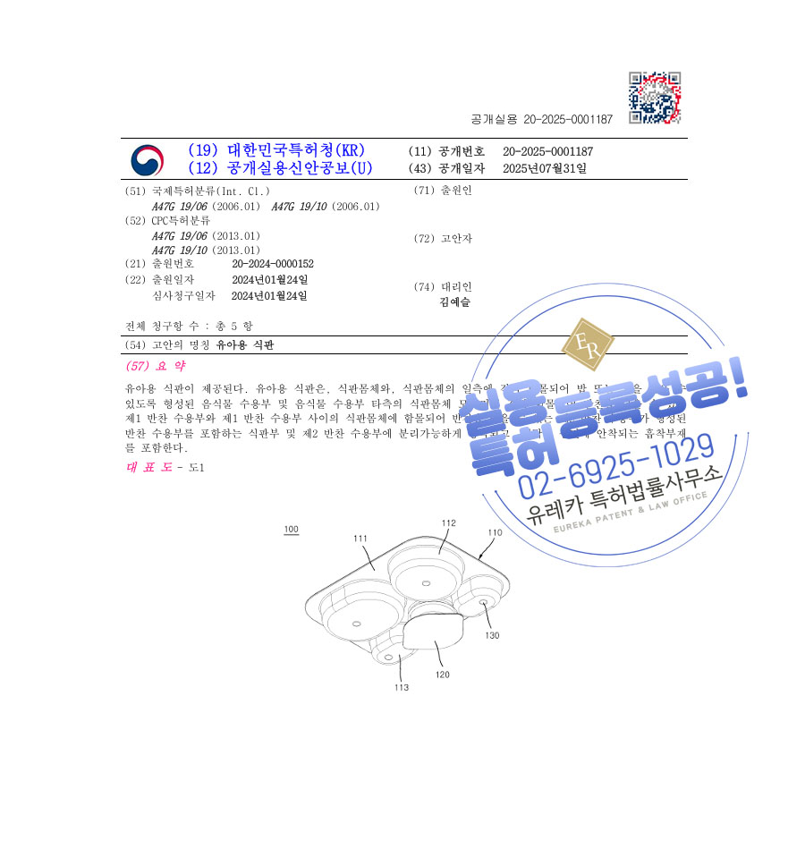 유레카 실용신안성공 II 하남 실용신안, 식기, 유아용품, 도시락, 접시 실용신안 특허 출원 및 등록 “유아용 식판” 실용신안 특허권 등록
