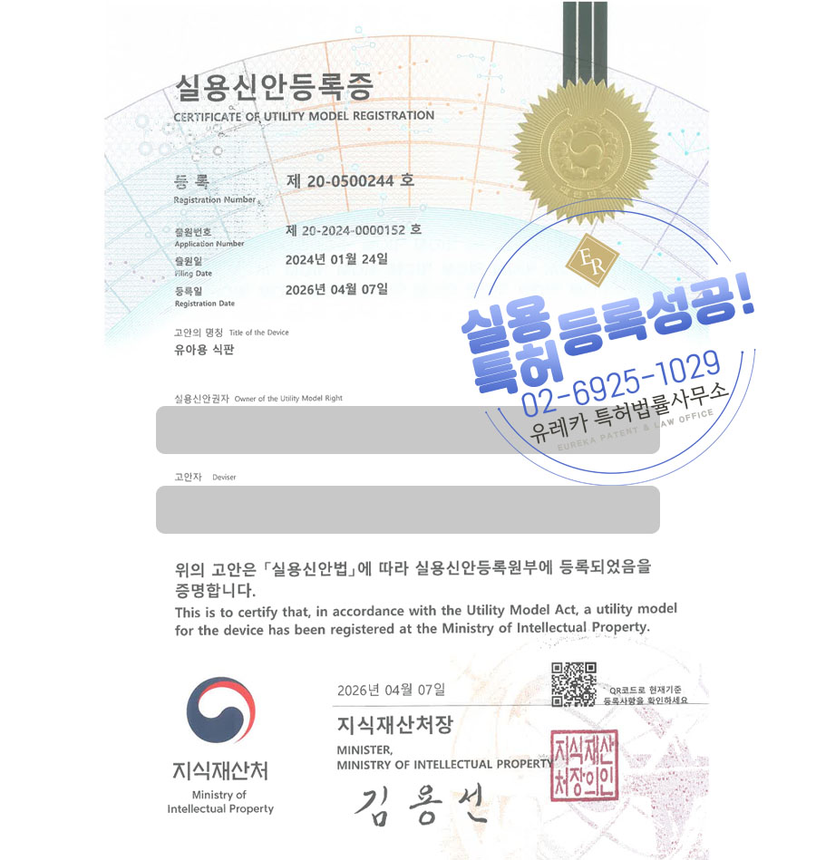 실용신안등록 성공했습니다!