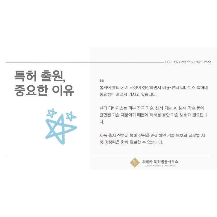 따라서 단순한 제품 설명이 아니라 기술 구조를 기준으로 미용·뷰티 디바이스 특허 출원을 준비하는 것이 중요합니다.