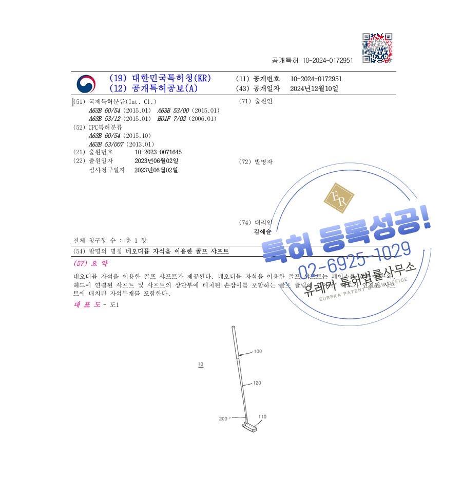 유레카 특허 등록 성공사례 II 골프 클럽헤드, 골프공, 스윙연습기 특허 출원 “네오디뮴 자석을 이용한 골프 샤프트” 특허권 등록