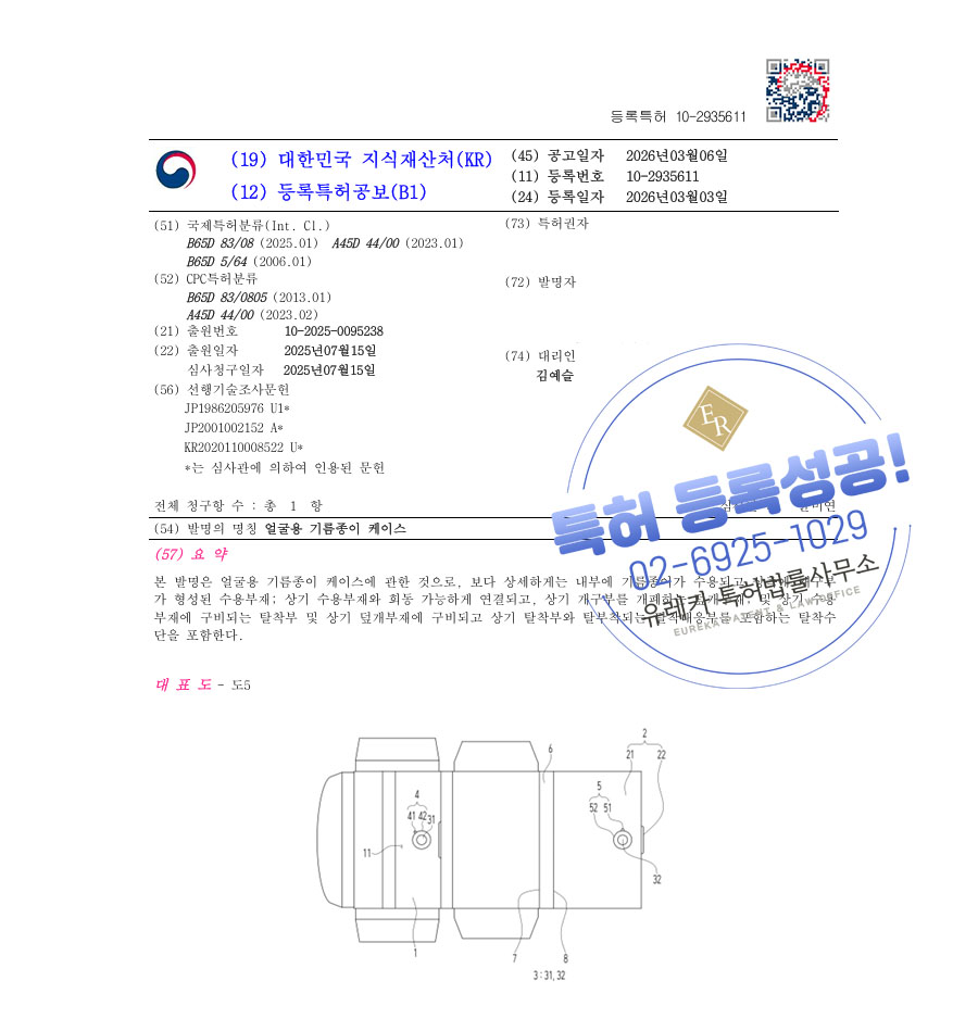 유레카 특허 등록 성공사례 II 미용소품, 메이크업, 화장품용기 특허 출원 “얼굴용 기름종이 케이스” 특허권 등록