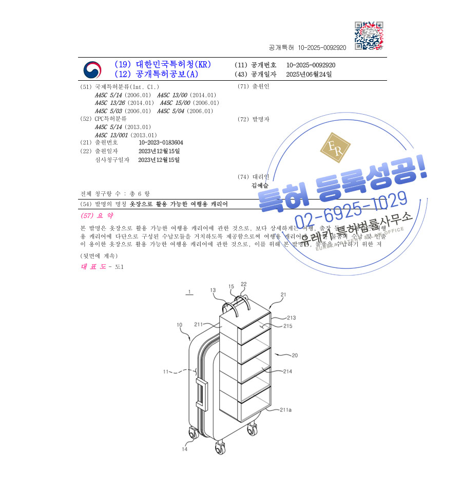 유레카 특허 등록 성공사례 II 부산특허, 접이식 가방, 조립 가구 특허 출원 “옷장으로 활용 가능한 여행용 캐리어” 특허권 등록
