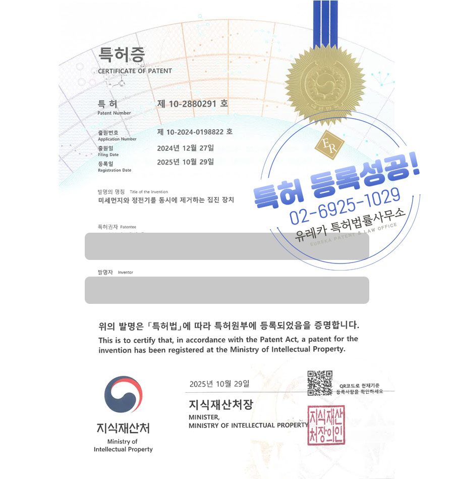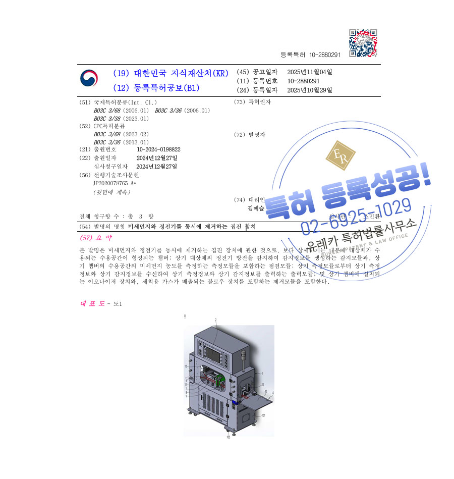 유레카 특허 등록 성공사례 II 스크러버, 덕트, 인천 특허 출원 “미세먼지와 정전기를 동시에 제거하는 집진 장치” 특허권 등록
