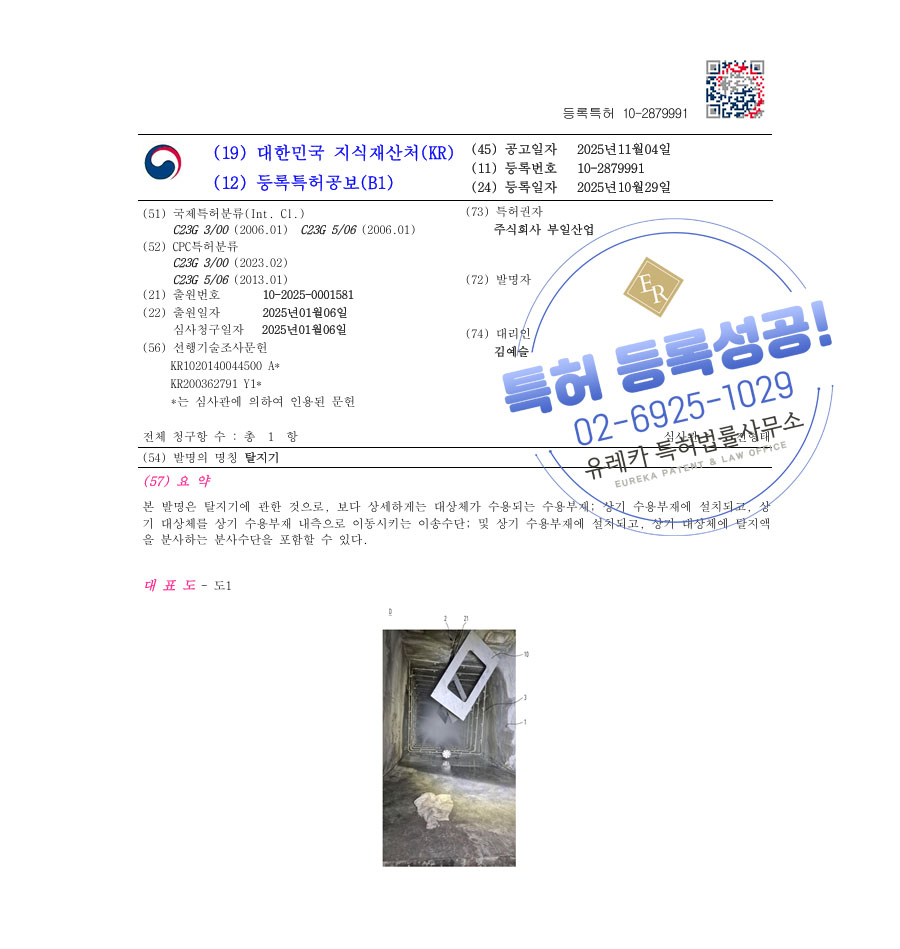 유레카 특허 등록 성공사례 II 스트리핑, 후가공 기계, 부천 특허 출원 “탈지기” 특허권 등록