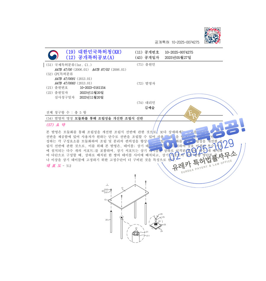 선반특허등록, 선반특허출원, 가구특허출원, 스마트가구, 인테리어특허출원, 모듈시스템가구, 모듈형가구, 조립식가구, 빌트인가구, 시스템가구, 수납가구, 가구프레임, 친환경가구, 목재가구, 테이블, 모듈러, 주방가구, 거실가구, 의자, 가구힌지