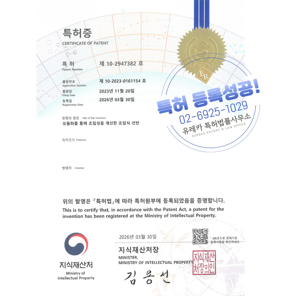 지식재산처, KIPO, 유레카특허법률사무소, 특허출원, 특허등록, 특허권출원, 특허권등록, Patentregistration, Patentapplication