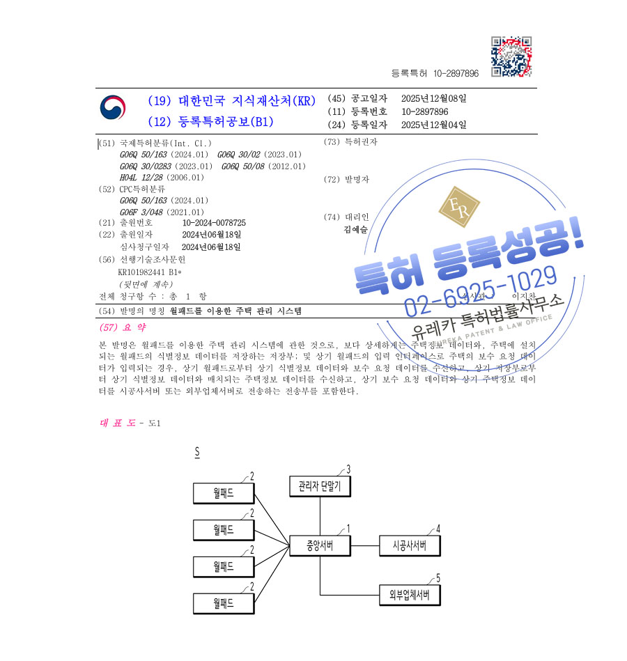 유레카 특허 등록 성공사례 II 아파트, 리모델링, 스마트홈 특허 출원 “월패드를 이용한 주택 관리 시스템” 특허권 등록