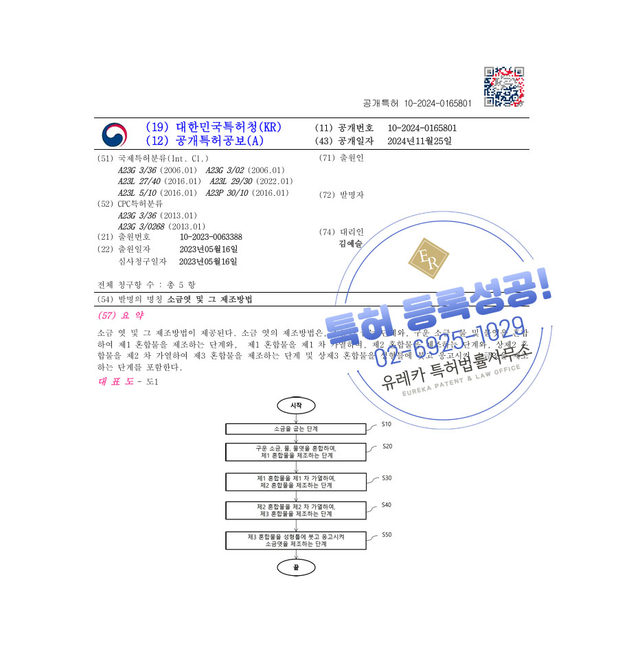 유레카 특허 등록 성공사례 II 전통 디저트, 사탕, 오란다 특허 출원 “소금엿 및 그 제조방법” 특허권 등록