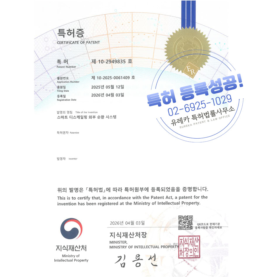 지식재산처, KIPO, 유레카특허법률사무소, 특허출원, 특허등록, 특허권출원, 특허권등록, Patentregistration, Patentapplication