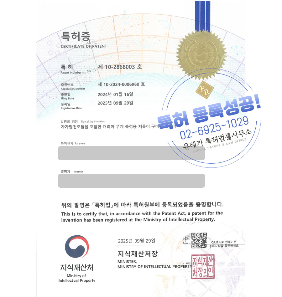 특허등록 성공했습니다!