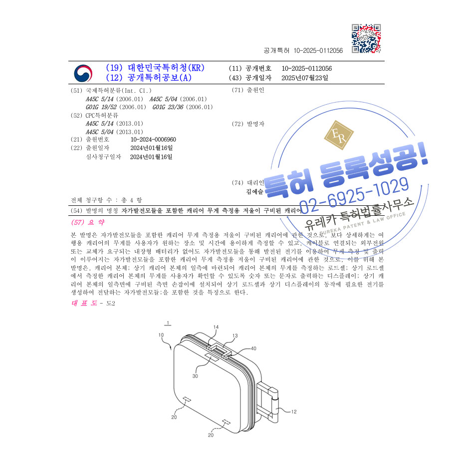 “자가발전모듈을 포함한 캐리어 무게 측정용 저울이 구비된 캐리어”의