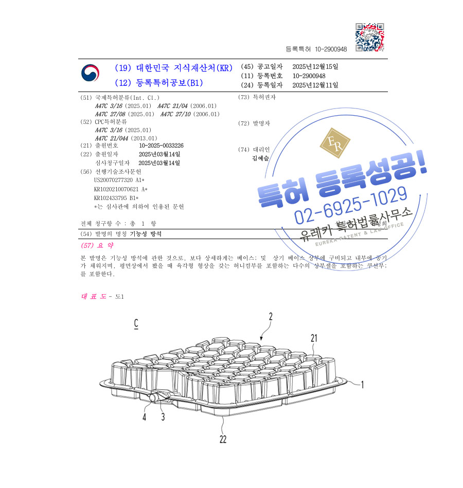 유레카 특허 등록 성공사례 II 침구, 메모리폼, 에어 쿠션 특허 출원 “기능성 방석” 특허권 등록