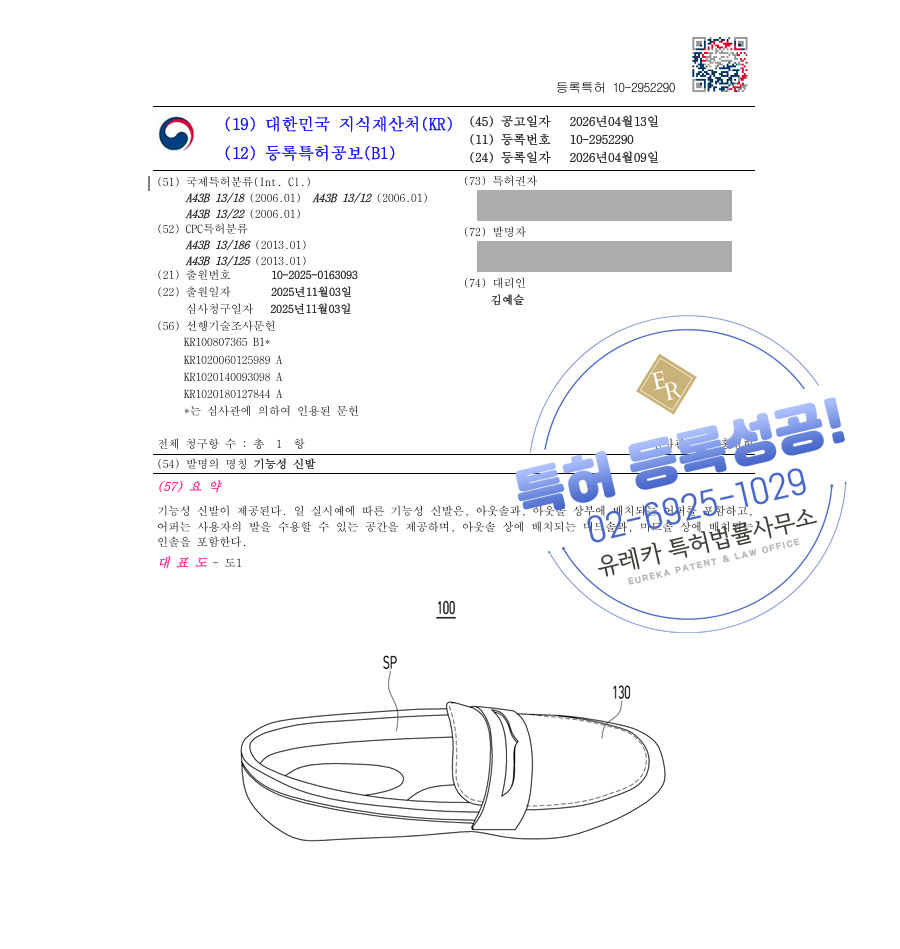 유레카 특허 등록 성공사례 II 패션 잡화, 운동화, 깔창, 양말, 발 교정기구 특허 출원 “기능성 신발” 특허권 실용신안 등록