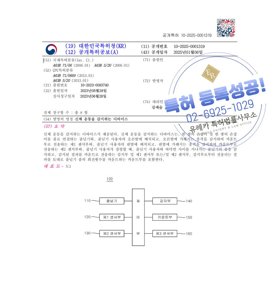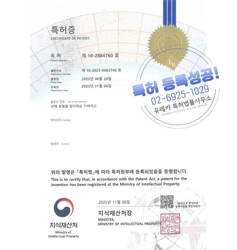 유레카 특허 등록 성공사례 II 헬스, 모션센서, 웨어러블 장치 특허 출원 “신체 운동을 감지하는 디바이스” 특허권 등록