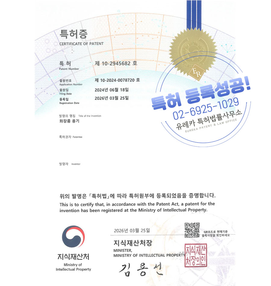 지식재산처, KIPO, 유레카특허법률사무소, 특허출원, 특허등록, 특허권출원, 특허권등록, Patentregistration, Patentapplication