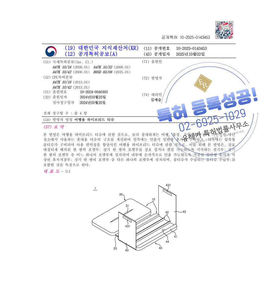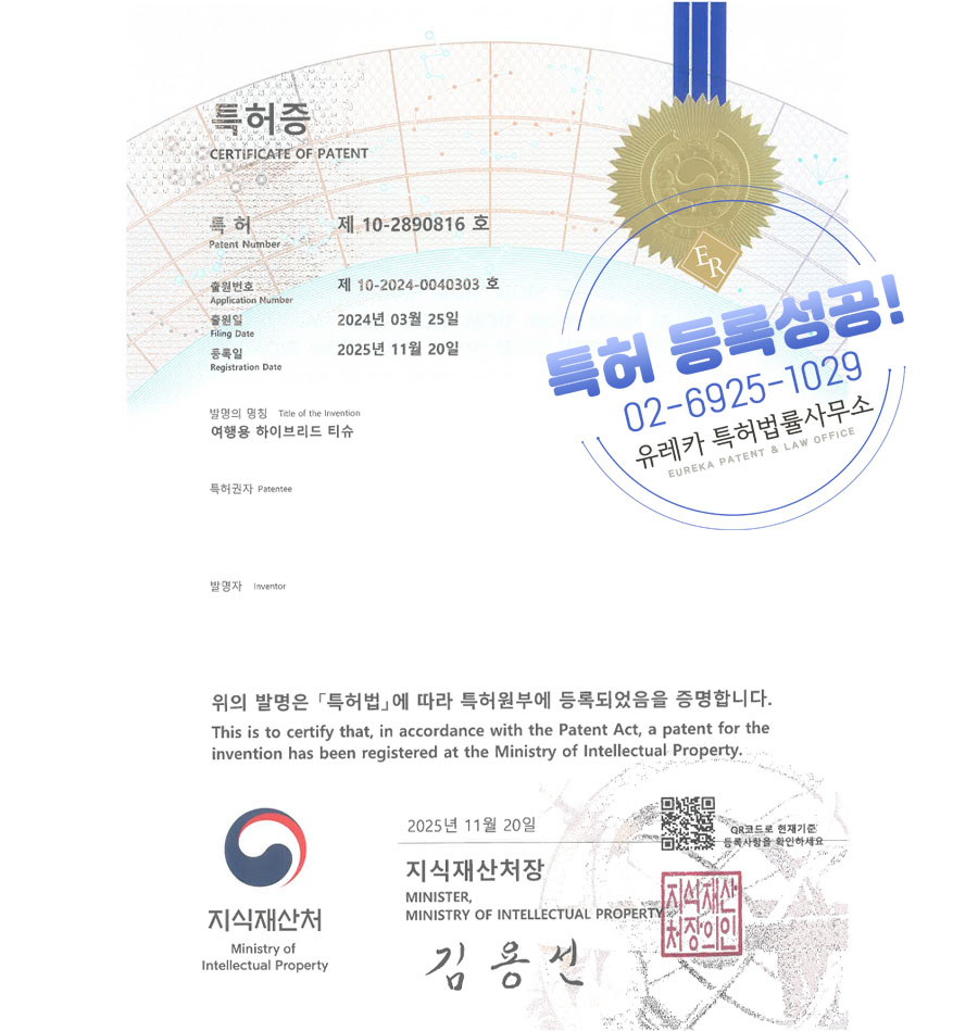 유레카 특허 등록 성공사례 II 휴지, 물티슈, 케이스 특허 출원 “여행용 하이브리드 티슈” 특허권 등록