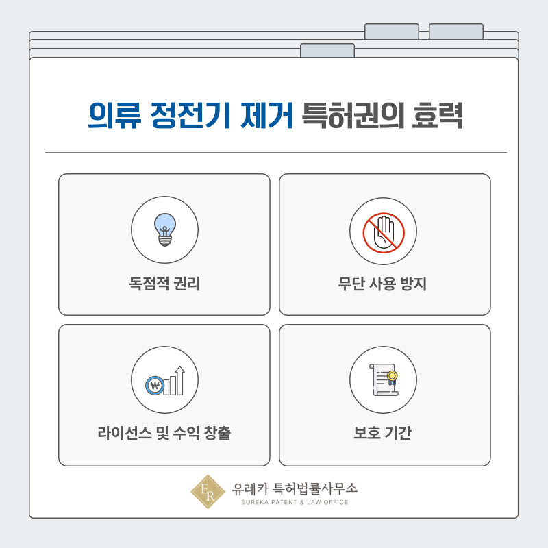 등록된 이후에는 해당 정전기 제거 기술에 대해 독점적인 권리를 확보하게 됩니다.