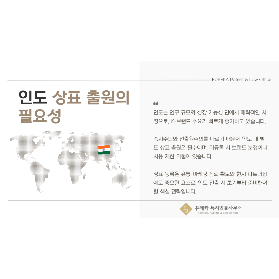 그래서 인도 시장에서는 상표 등록이 선택이 아니라 브랜드 보호와 사업 안정성을 위한 필수 전략이라고 볼 수 있습니다.