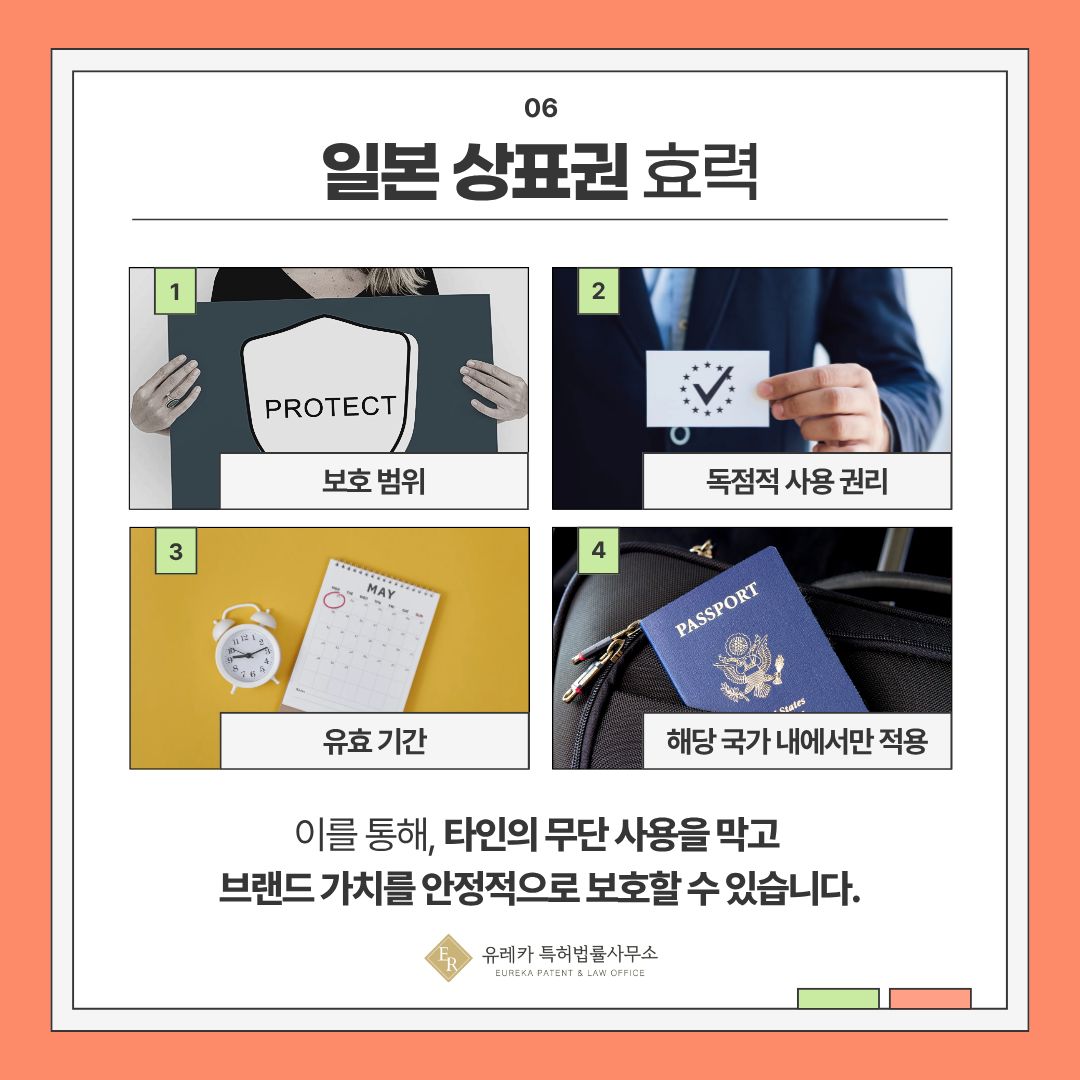 일본 상표권은 속지주의에 따라 일본 국내에서만 효력이 있습니다.