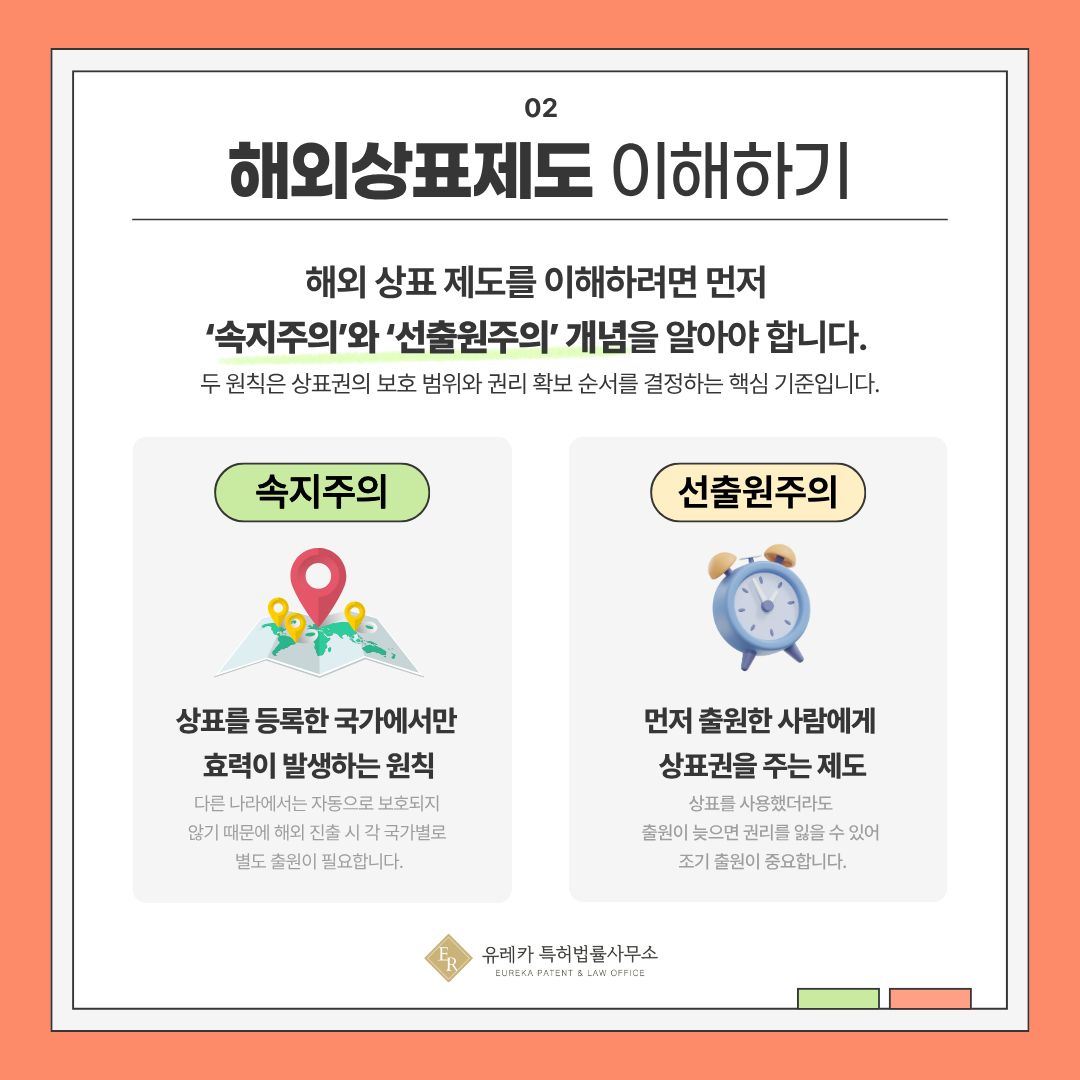 해외 상표 제도의 핵심은 두 가지 원칙입니다. 바로 속지주의와 선출원주의.