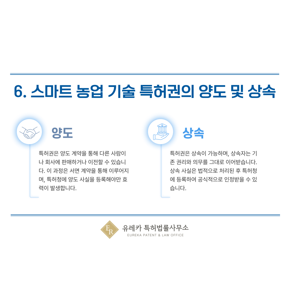 6. 스마트 농업 기술, 작물 재배 생산 기술, 정식, 파종 장치, 토양개량제, 관수/관비 시스템 특허권의 양도 및 상속
