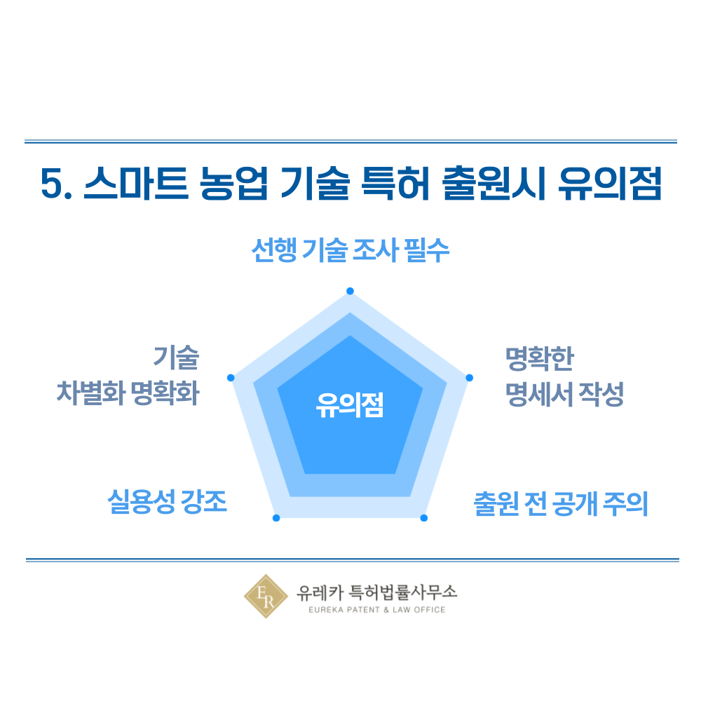 5. 스마트 농업 기술, 작물 재배 생산 기술, 정식, 파종 장치, 토양개량제, 관수/관비 시스템 특허 출원시 유의점