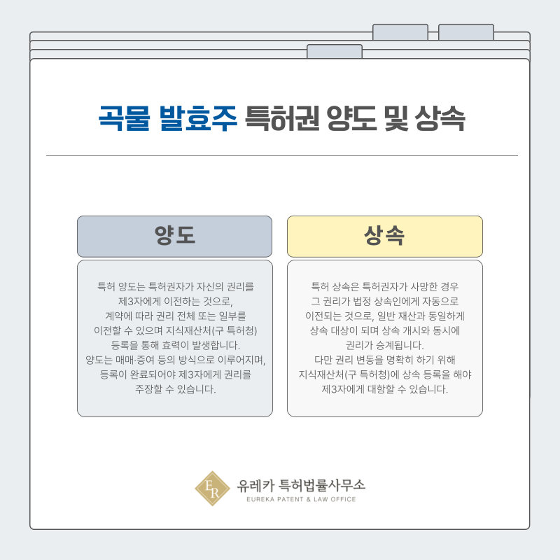 청주나 약주처럼 대대로 내려오는 가문의 비법이 특허화되어 있다면 가업 승계의 핵심 자산이 됩니다.