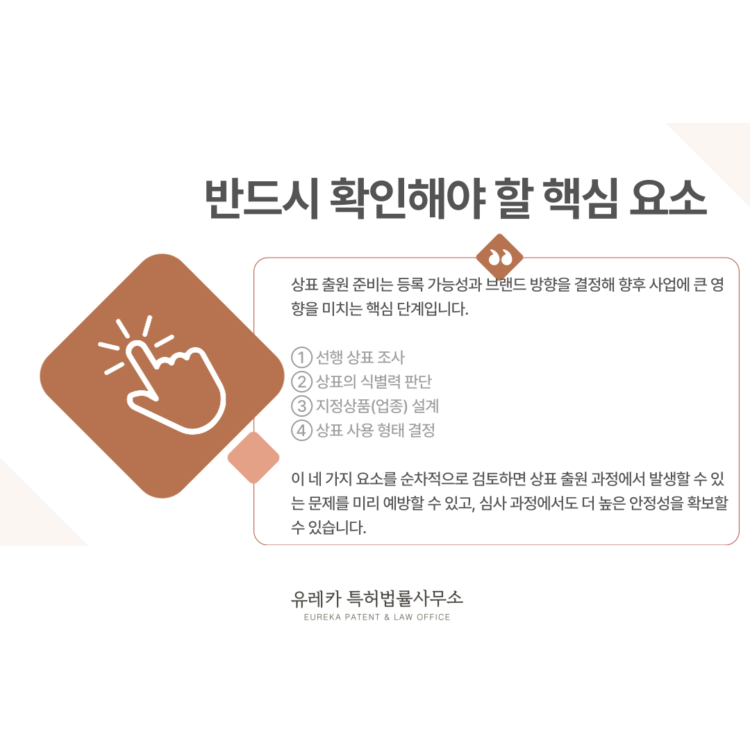 상표 출원을 준비할 때는 등록 가능성과 브랜드 방향을 함께 고려하는 과정이 필요합니다.