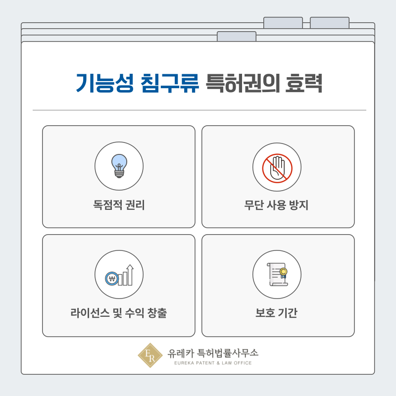 이러한 효력은 단순 등록 의미를 넘어 기술 모방을 억제하고 시장에서 권리를 실질적으로 보호하는 역할을 하게 됩니다.