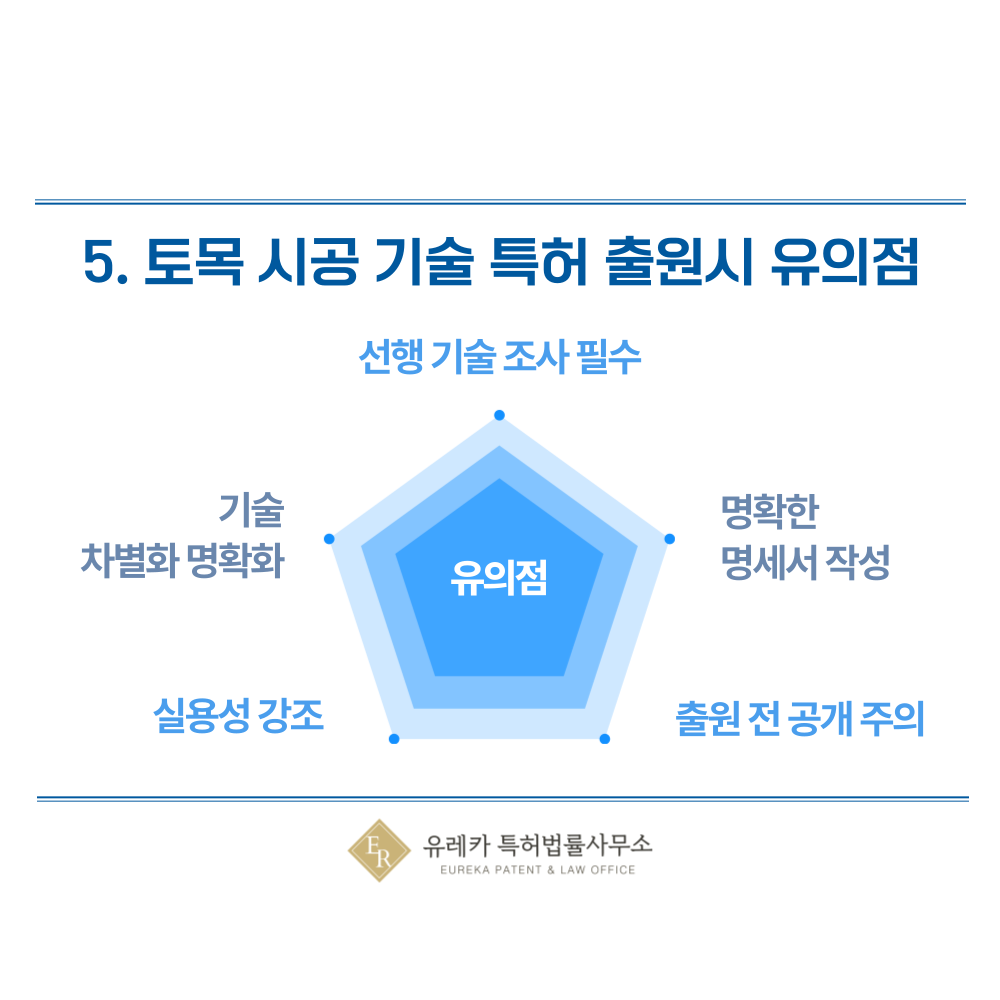 5. 토목 시공 기술, 토공, 기반, 절·성토, 정지, 굴착·사면 안정, 토사 운반·다짐 공법 특허 출원시 유의점