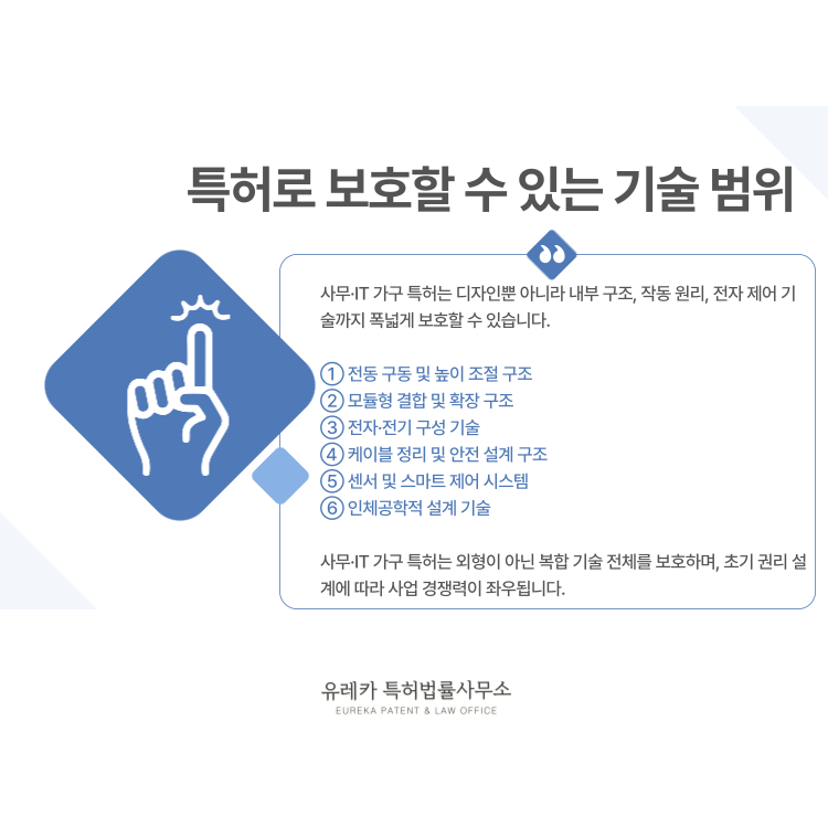 사무·IT 가구 특허로 보호할 수 있는 기술 범위는 생각보다 넓습니다.