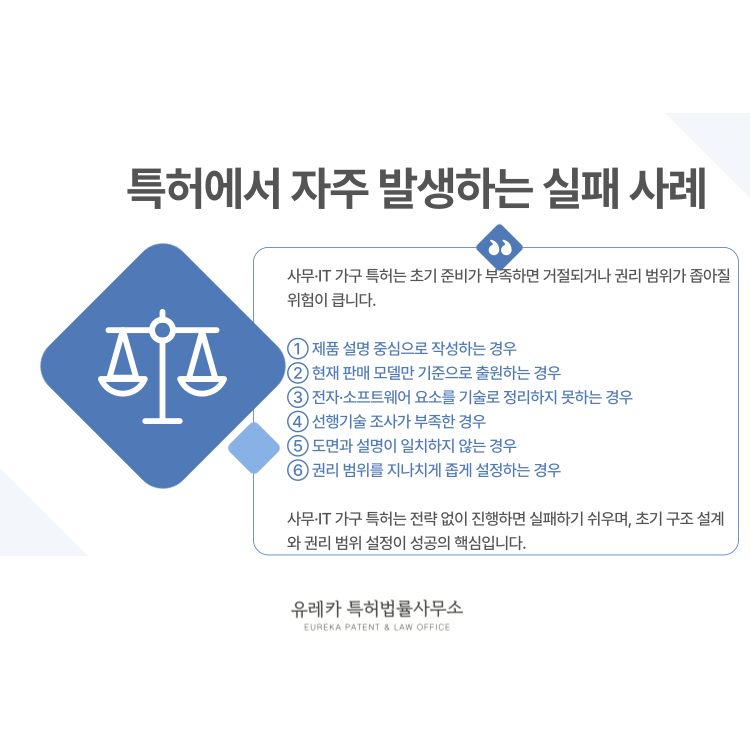 사무·IT 가구 특허 실패 사례는 대부분 전략 부재에서 비롯됩니다.