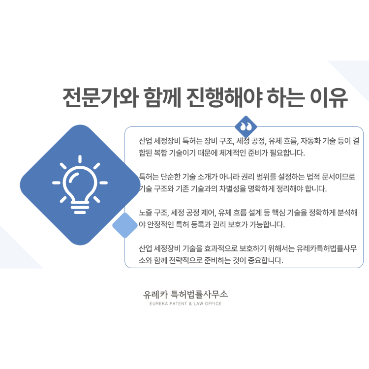 산업 세정장비 특허는 단순한 행정 절차가 아니라 기술 경쟁력을 보호하는 중요한 전략입니다.