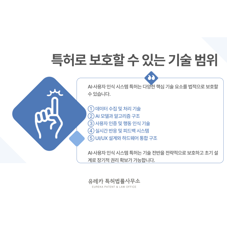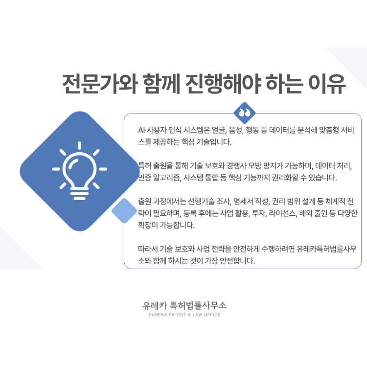 이처럼 AI·사용자 인식 시스템 특허는 기술 보호와 사업 전략을 동시에 고려해야 하는 중요한 자산입니다.