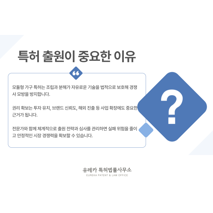 유레카특허법률사무소와 함께라면 모듈형 가구 특허는 단순한 기술 보호가 아니라,