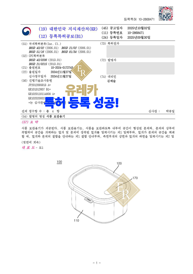 #식품보관용기특허 #식품저장용기특허 #밀폐용기특허 #진공보관용기 #주방용품특허 #생활용품특허 #식품용기기술 #용기구조특허 #PatentRegistration #PatentApplication #특허 #특허출원 #특허등록 #특허권 #특허등록사례 #유레카특허법률사무소