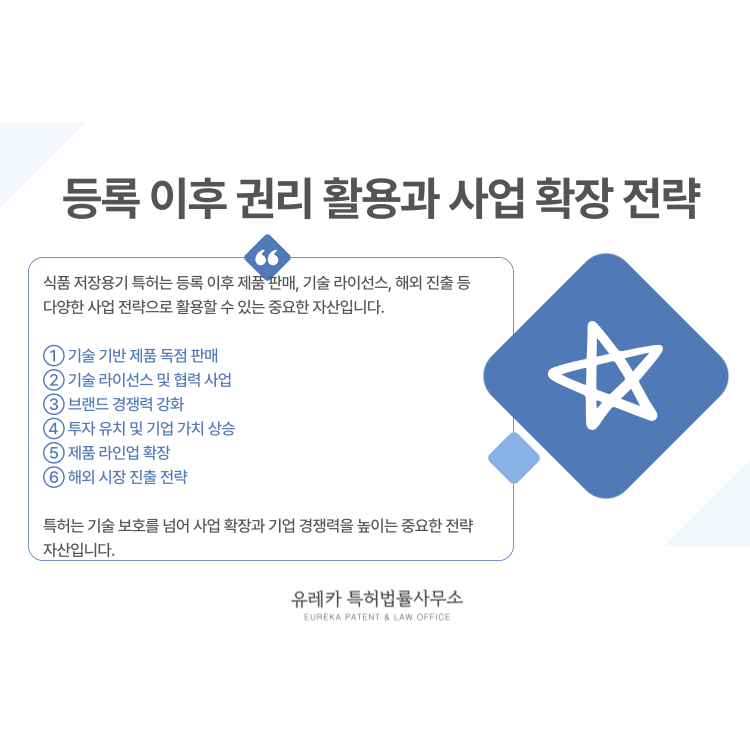 식품 저장용기 특허는 단순히 제품을 등록하는 절차가 아니라 기술 경쟁력을 보호하는 중요한 전략입니다.