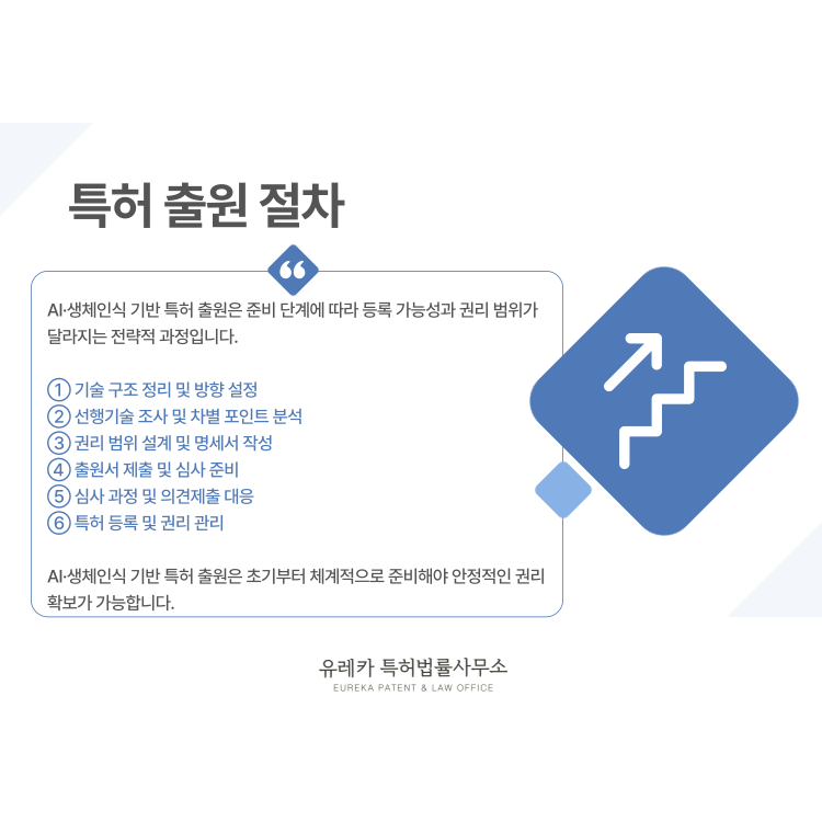 AI·생체인식 기반 특허 출원 절차는 아이디어를 서류로 제출하는 과정이 아니라 기술을 보호 가능한 권리로 정리하는 단계입니다.