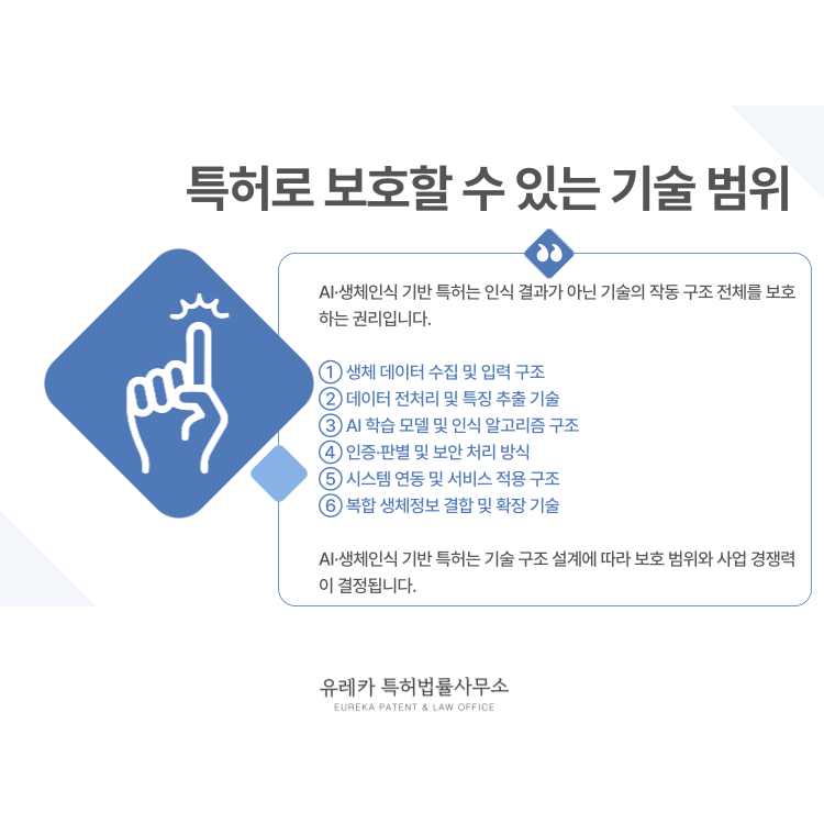 AI·생체인식 기반 특허는 결과가 아니라 작동 원리와 기술 흐름을 보호합니다.