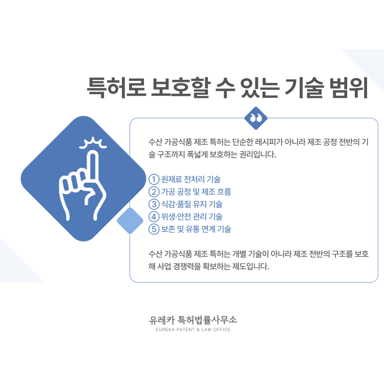 수산 가공식품 제조 특허로 보호할 수 있는 기술 범위는 생각보다 넓습니다.