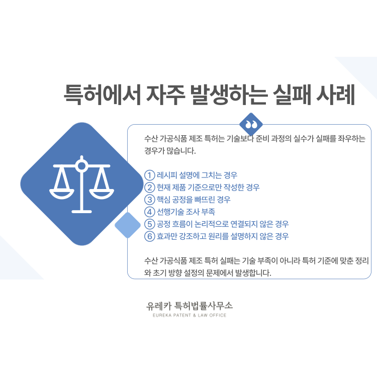 수산 가공식품 제조 특허에서는 기술 자체보다 준비 과정에서의 실수로 실패하는 경우가 많습니다.