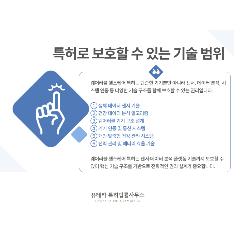 따라서 웨어러블 헬스케어 특허 역시 하나의 장치만 보호하는 것이 아니라 여러 기술 영역을 함께 보호할 수 있습니다.