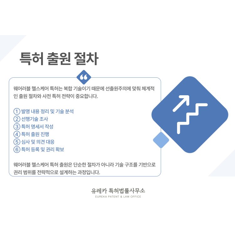 웨어러블 헬스케어 특허 출원 절차는 단순한 행정 절차가 아니라 기술 구조를 법적으로 설계하는 과정입니다.