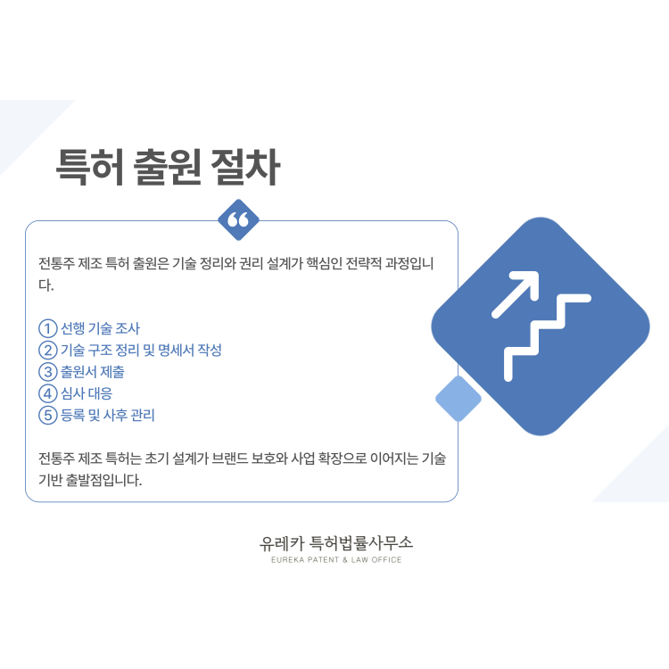 전통주 제조 특허는 술을 등록하는 절차가 아니라, 양조 기술을 오래 지킬 수 있는 권리 구조로 만드는 전략 과정입니다.