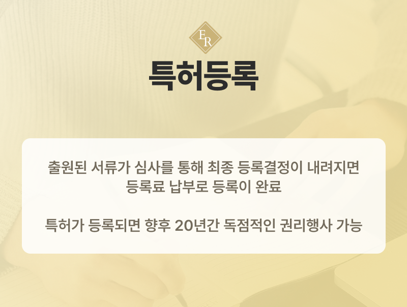 한 번의 등록으로 20년간 권리를 독점할 수 있고, 사업 확장 및 투자금 유치 등 사업의 성장에 큰 기여를 하게 되는 특허등록!