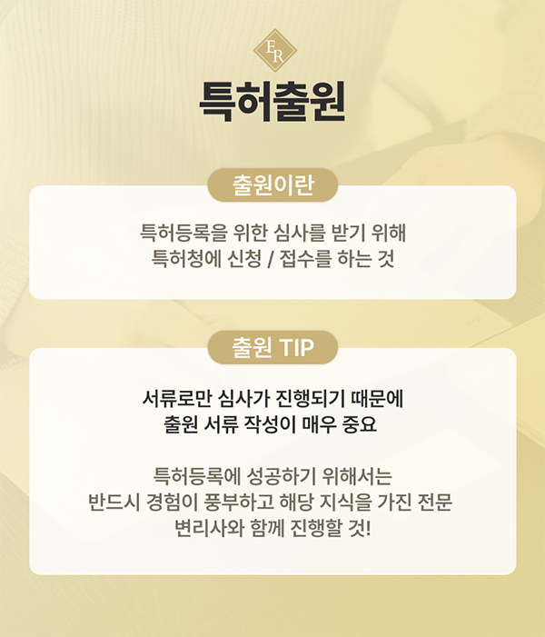 서류로만 심사가 진행되기 때문에 출원 서류 작성이 매우 중요하며 특허 등록에 성공하기 위해서는 반드시 경험이 풍부하고 해당 지식을 갖춘 전문 변리사와 함께 진행하는 것이 좋습니다.