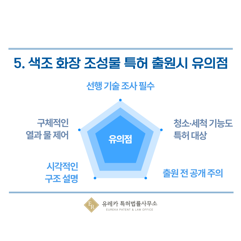 5. 색조 화장 조성물, 파운데이션, 쿠션, 컨실러, 립스틱, 틴트, 마스카라 조성물, 용기, 패키징 특허 출원시 유의점