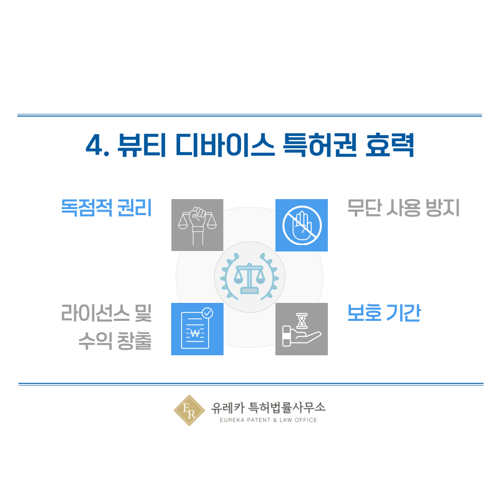 피부미용 장치와 관련된 특허권 역시 동일하게 보호되며 권리 가치도 그대로 유지됩니다.