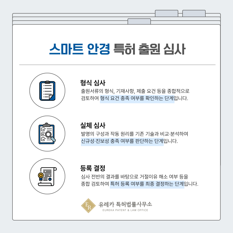 AI 스마트 안경, AR 안경, 카메라 내장 안경, 반사방지 코팅 기술이 출원되면 가장 먼저 형식심사가 진행됩니다.