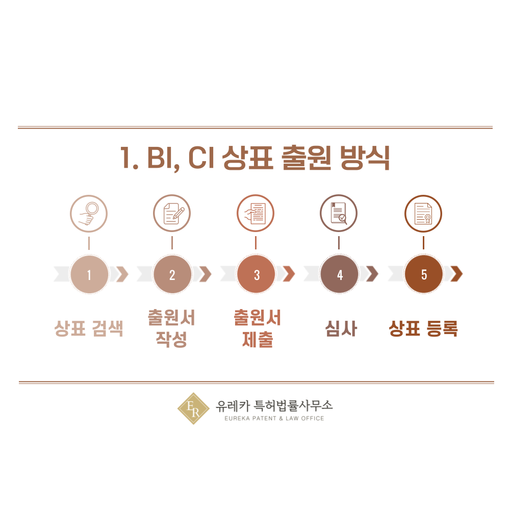 BI, CI를 상표로 등록하기 위한 첫 단계는 이미 동일하거나 유사한 상표가 존재하는지 검색하는 과정입니다.